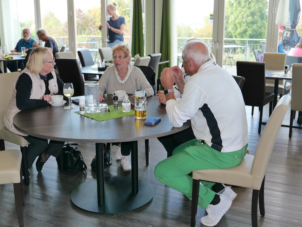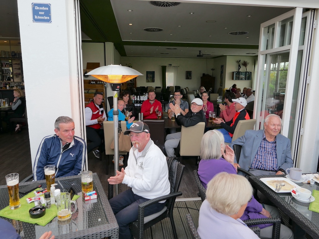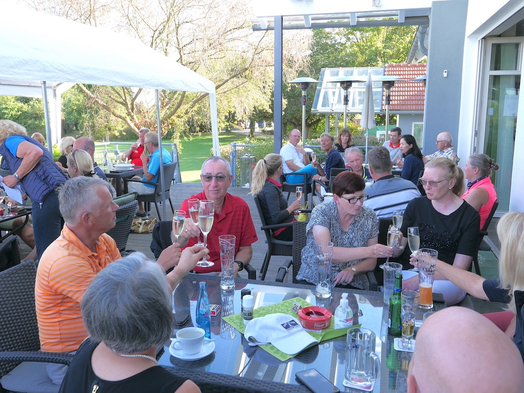 Die Spieldauer der Flights betrug etwas mehr als vier Stunden und der Spielfluss war gut, so dass die Spielerinnen und Spieler bis 17.30 Uhr wieder auf der Terrasse des Clubrestaurants versammelt waren. Die Mehrheit fand sich trotz der Wartezeit zwischen erstem und letztem Flight zur Abschlussfeier zusammen (vielen Dank !).