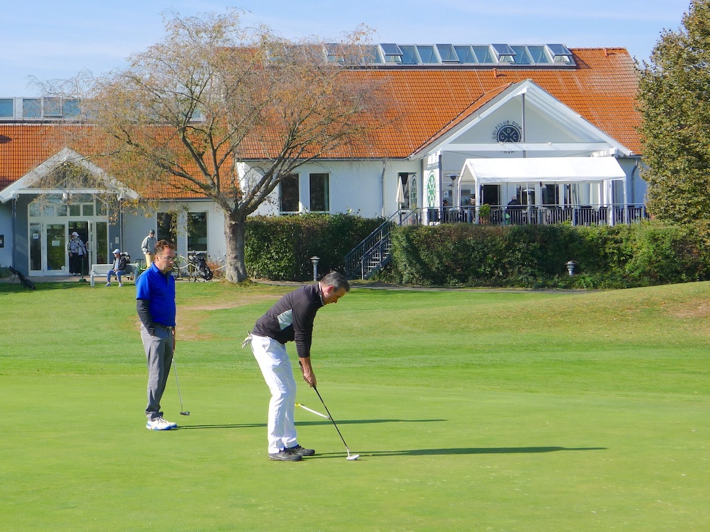 Nach herzlichen Begrüßungen untereinander, den notwendigen Formalitäten und etwas Aufwärmen ging es dann auf den Golfplatz zum Spiel.