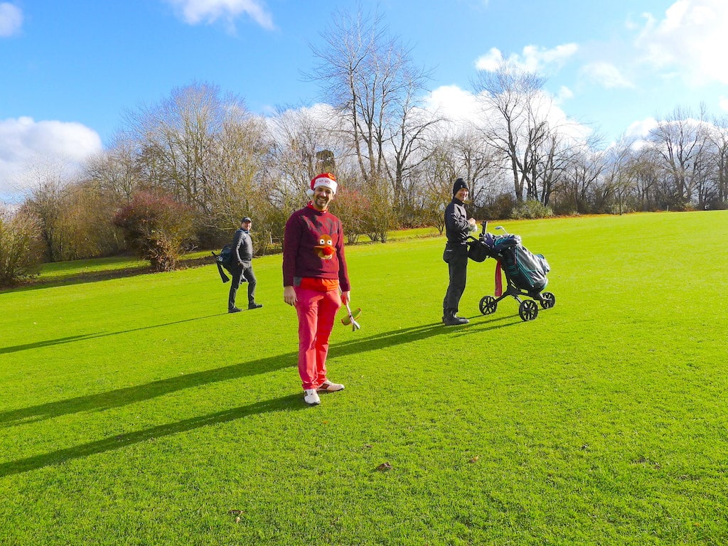 Um 10.00 Uhr starteten die warm und leicht weihnachtlich gekleideten, wild entschlossenen und gut gelaunten Teilnehmerinnen und Teilnehmer in acht Flights im Kanonenstart (ein Geschenk der Betreiber an den Club) über 18 Loch als Einzel und Zählweise nach Stableford.