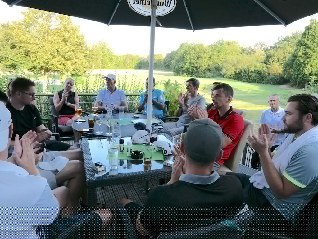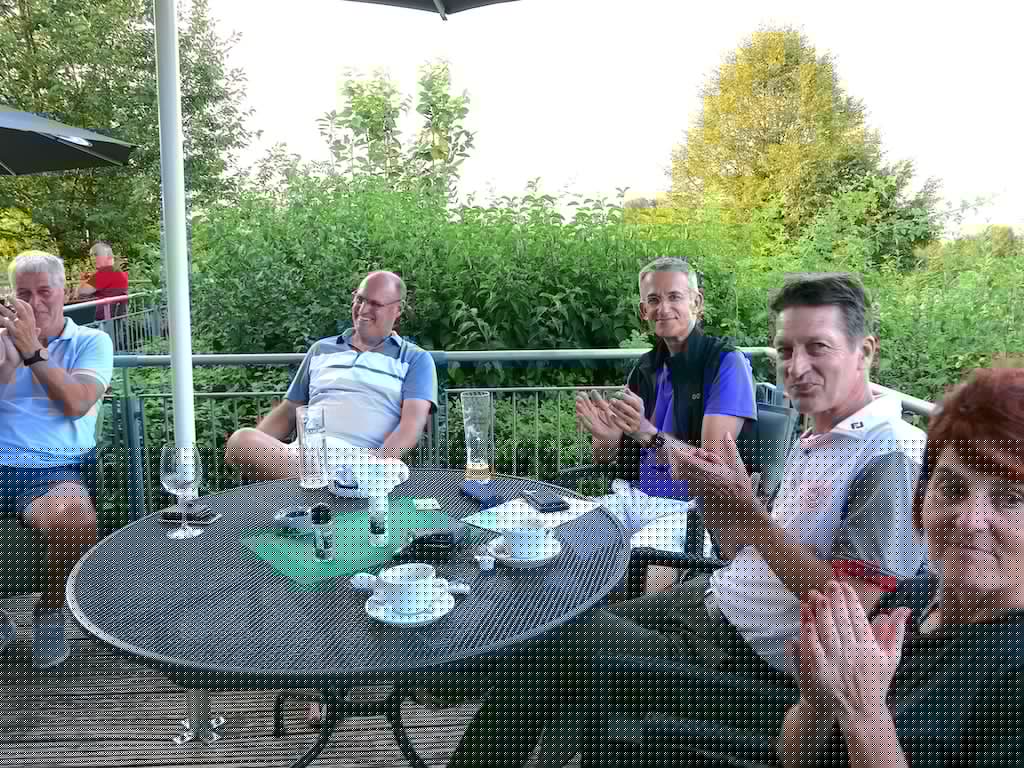 Nachdem sich die Teilnehmerinnen und Teilnehmer nach dem Spiel wieder frisch gemacht hatten, fanden sie sich zu erfrischenden Getränken und gemeinsamer Aufarbeitung der Turniertage und zur Siegerehrung auf der Terrasse des Golfrestaurants zusammen.