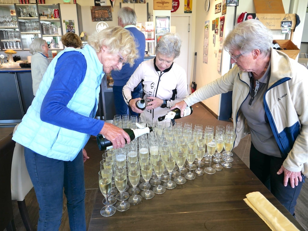 Harald Kiene übergab Alexandra Geuecke und Erni Scherhag mit dem Dank des Vorstandes für ihr großes ehrenamtliches Engagement je ein Sekt- und Wein-Präsent.