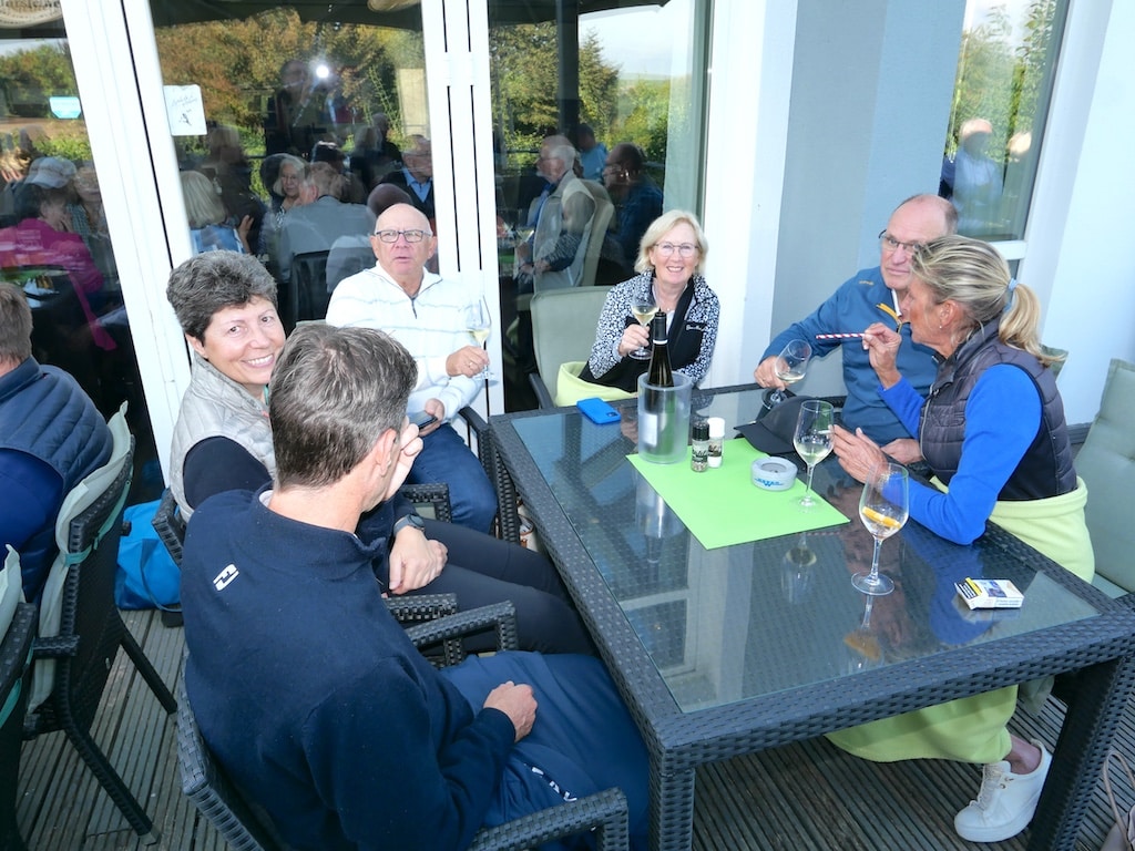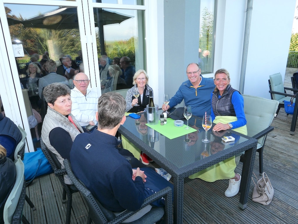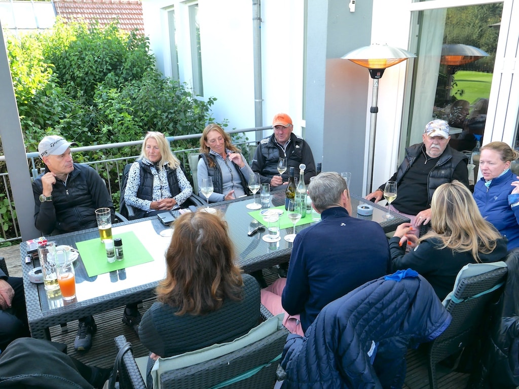 Bereits zwischen 15.30 Uhr und 16.00 Uhr, also nach knapp viereinhalb bis fünf Stunden (ein sehr guter Wert für Texas Scramble) war das Turnier vorbei und die Teilnehmer und Gäste fanden sich nach dem Frischmachen im Clubhaus zusammen.