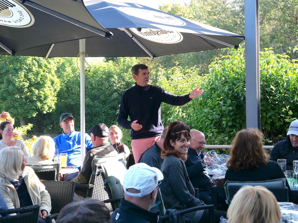 Präsident Gallois begrüßte anschließend die Anwesenden und brachte seine Freude über die gute Beteiligung zum Ausdruck. Er bedankte sich bei der Betreiberfamilie für den guten Zustand des Golfplatzes und bei den ehrenamtlich aktiven Mitgliedern für die Organisation des gelungenen Golftages.