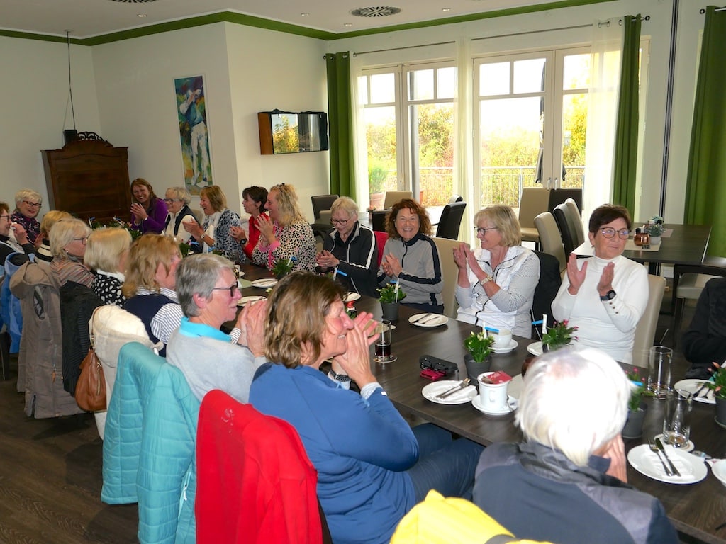 Franka Shirin Saathoff im Sekretariat lieferte die Turnier-Auswertung ohne Wartezeit und um 16.30 Uhr konnte Alexandra Geuecke, unterstützt von Erni Scherhag, die Ergebnisse verkünden, besonders treue Damengolferinnen ehren und die Siegerehrung im Golfrestaurant vornehmen. Sechs Teams und damit 55% der Teilnehmerinnen wurden prämiert.