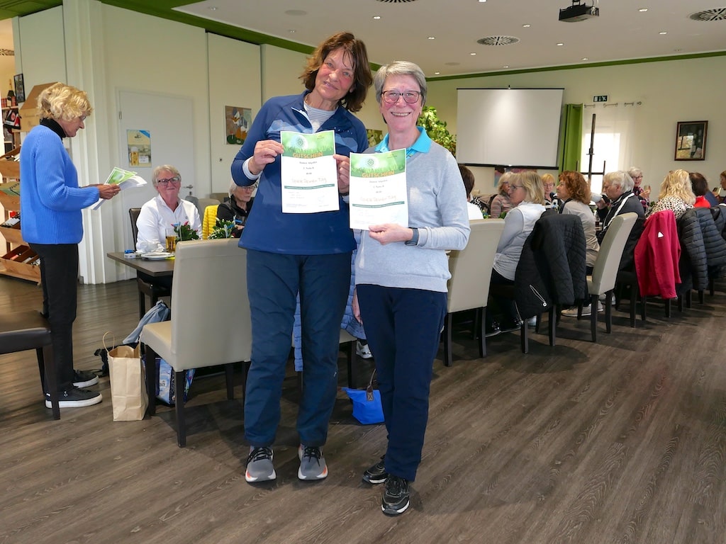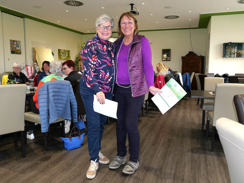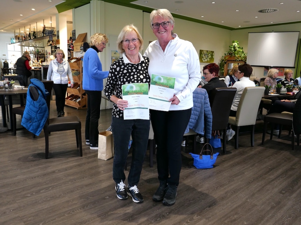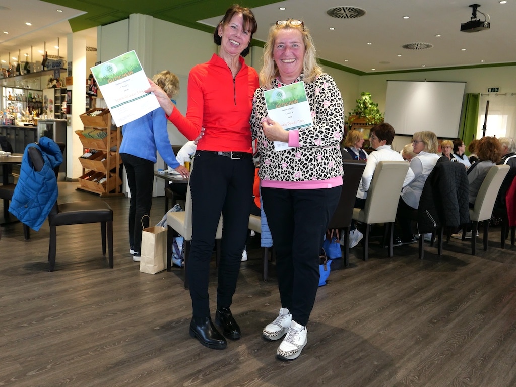 Cornelia Jahn und Britta Lubik siegten mit 32 Nettopunkten. Alle Siegerinnen nahmen, neben der Gratulation aller, GCDM-Gutscheine von Alexandra und Erni entgegen.