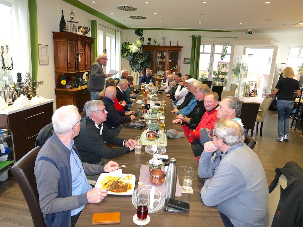 Dr. Frank-Thomas Schanz konnte auch bei diesem Abschluss wieder das Essen und ein Getränk von Teilnehmern, die mindestens zweimal an den Turnieren des Herrengolfens teilgenommen hatten, mit dem GCDM Budget des Herrengolfs übernehmen. Dafür bedankten sich die Golfer mit Applaus.