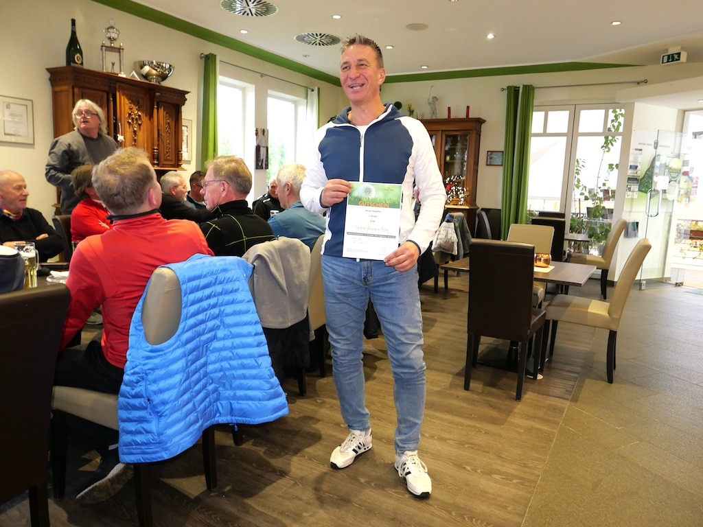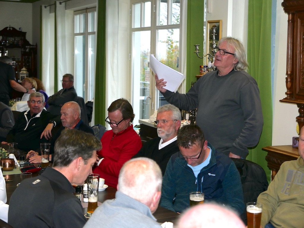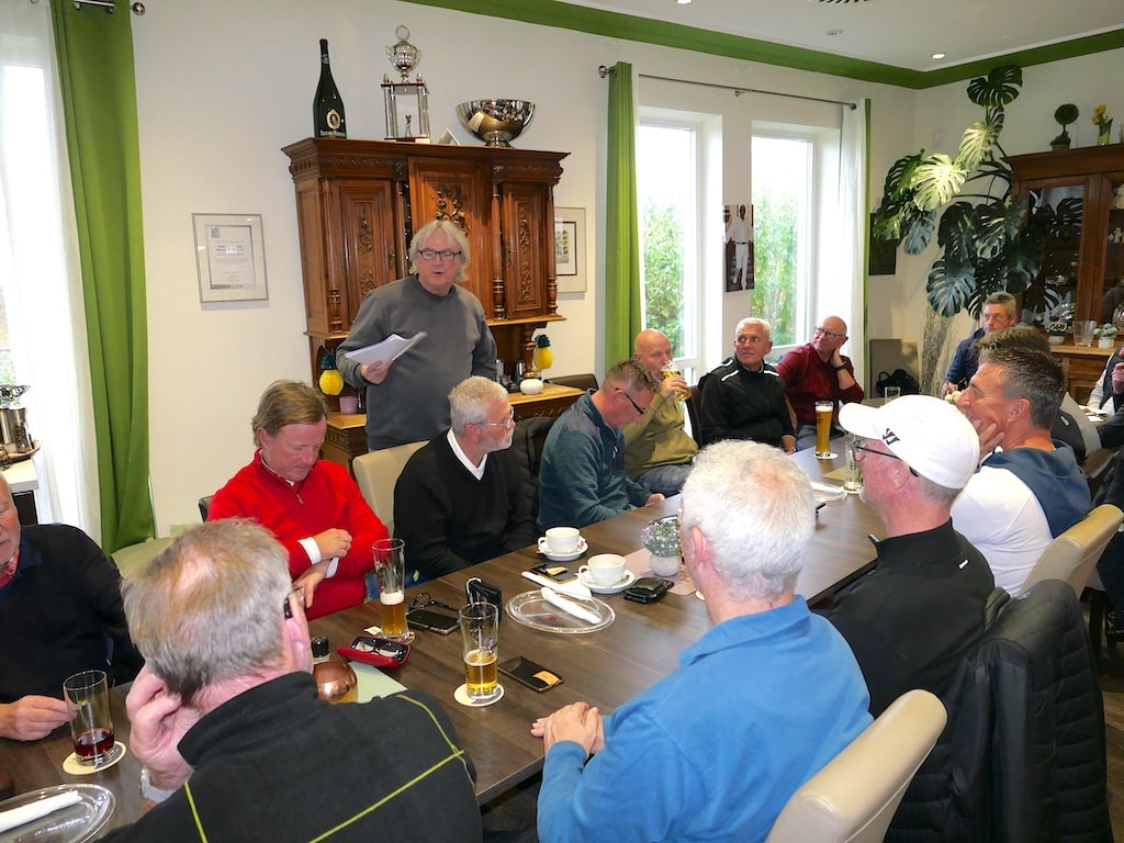 Dr. Frank-Thomas Schanz bedankte sich zum Abschluss der Saison bei den Teilnehmern an den Herrengolfturnieren für ein Jahr voller unterhaltsamer, aber auch hochklassiger Spiele. Er dankte auch der Betreiberfamilie und dem Greenkeeping, Birgitt und Jupp Milenkovic für die immer gute Verpflegung und dem Sekretariatsteam für die Unterstützung. Der Mens Captain beendete schließlich offiziell die Saison 2025 und stimmte alle auf die kommende Saison 2026 ein. Das dankten ihm die Anwesenden mit kräftigem Applaus.